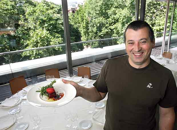 Un espacio diáfano en el Museo de Bellas Artes de Bilbao es el escenario donde el locuaz cocinero Aitor Basabe elabora recetas serias, apacibles y elegantes. Tres familias de productos convierten a Basabe en un verdadero especialista. Primero, las setas, que conoce a fondo; después, el foie-gras, que trata con particular delicadeza y sabe realzar con aliños originales, y los pescados, a los que aplica puntos de cocción impecables y permite combinarlos a capricho con alguna de las tres salsas que figuran en la carta.Para empezar, tal vez una armoniosa ensalada de verduras asadas con anchoas y glaseado de aceitunas.