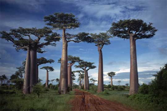 Madagascar es, entre otras muchas cosas, el país de los baobabs. Cierto que la isla posee una fauna única, en la que destacan los divertidos lémures, unas tierras altas que embrujan con sus colinas verdes y sus campos de arroz de reminiscencias asiáticas y unas playas de arena y palmeras que provocan el asombro del viajero, pero son probablemente los baobabs -unos árboles enormes, antiguos y misteriosos- lo que más impresiona de la isla africana, cuarta del mundo en extensión.El baobab es, en cierto modo, la memoria de África, ya que algunos tienen más de 3.000 años.