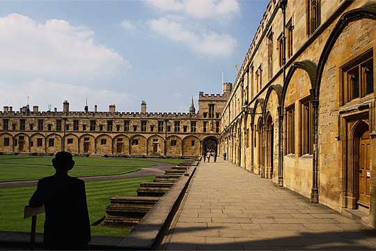 Hay días en que sus pináculos góticos emiten destellos tan dorados como si el sol se acostara sobre una corona de oro. Otras veces, la bruma pegajosa se desploma sobre sus piedras bruñidas y la envuelve con un manto gris, intimista y melancólico durante días, semanas quizá, aunque el calendario se empeñe en recordar que en el resto del hemisferio es verano. Entonces, la lluvia repiquetea en Carfax y en Cornmarket como agujas de vidrio y los estudiantes corren dando saltitos de una acera a otra evitando los charcos mientras los jardines del Magdalen College o de Christ Church se empapan con otra pátina de tradición.La tradición.
