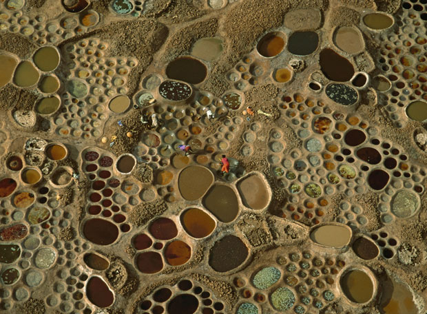 Ganarle el pulso al desierto africano es casi imposible. Pero sí se puede aprovechar su avance inclemente y tórrido para producir kilos y kilos de sal. Es lo que hacen los habitantes del pueblo de Teguidda-n-Tessoumt, en la región central de Níger.Desde hace siglos mezclan en unas piscinas agua salada con diferentes tipos de suelos y productos orgánicos, también ricos en sal. La paleta de artista que se ve en la imagen se debe a que barro, fango y algas tienen propiedades químicas y colores distintos que, junto a la mayor o menor cantidad de sal en el agua, producen todo tipo de matices.